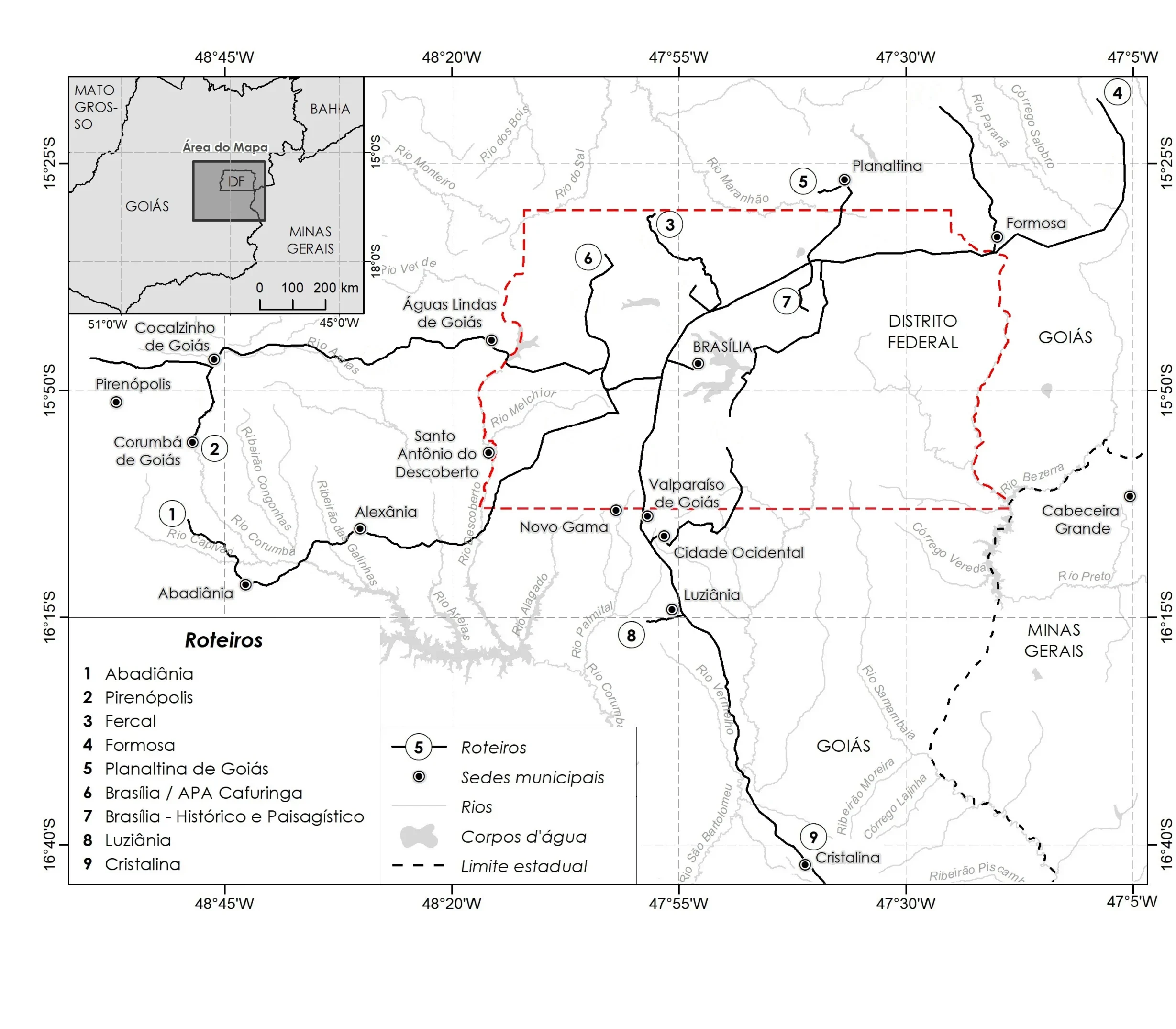 utilizados como referência neste roteiro o Mapa Geológico do DF (Escala 1:100.000) e o Mapa