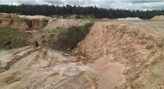 Trata-se de uma jazida de areia quartzosa onde ocorre o processo de lavra a céu