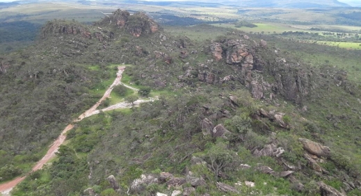 O alinhamento de cristas rochosas observadas do topo do morro da Capela tem